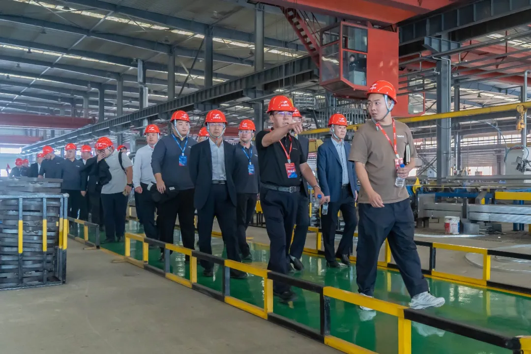 杨俊斌一行分别深入友发创意园及友发德众400方车间实地考察,详细了解了友发集团的发展历程、园区建设理念及产业布局规划,近距离观察产品生产流程与质量管控体系,深入了解友发在技术创新、产能规模等方面的优势。